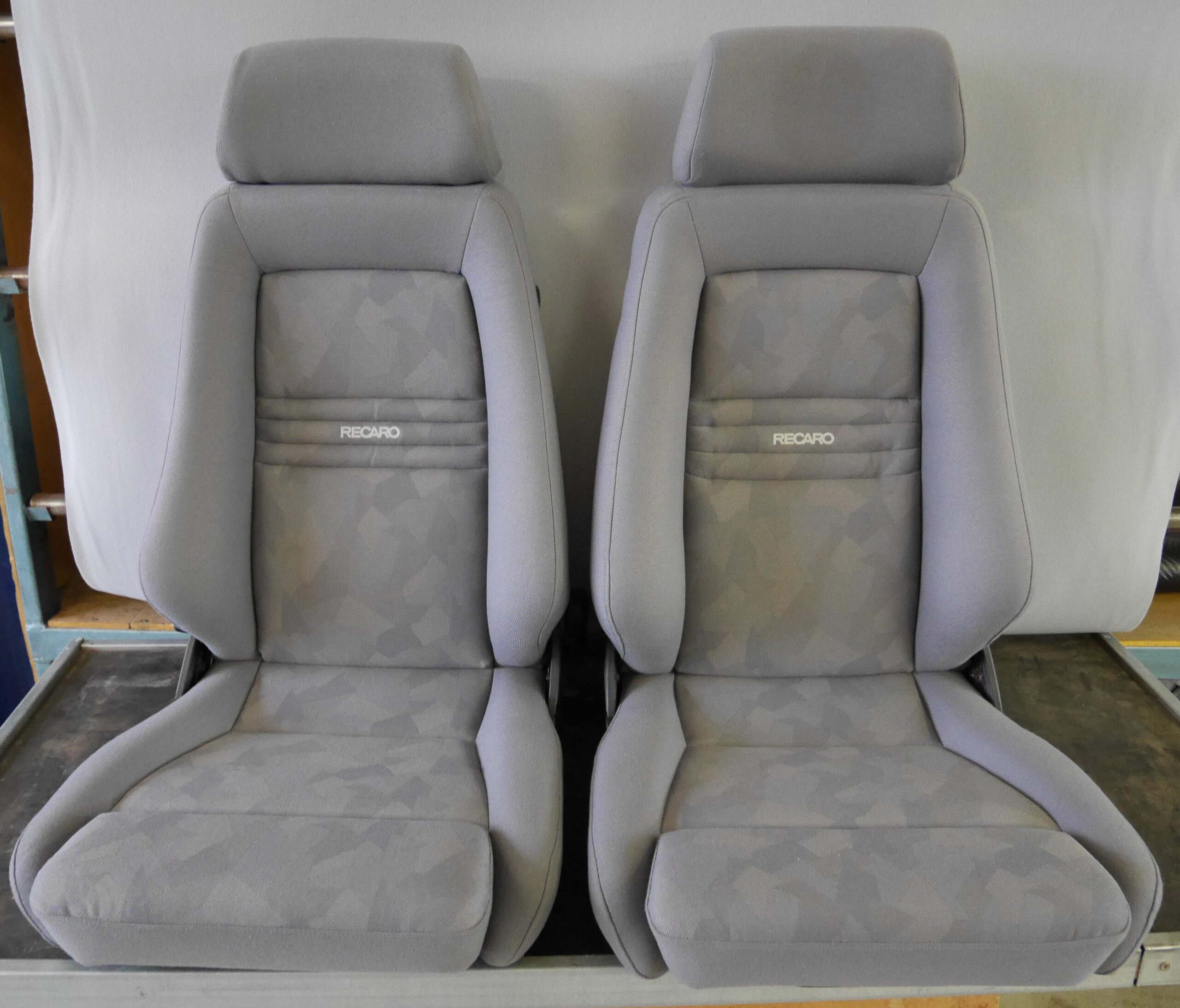 1 sæt Recaro Specialist M i grå stof. Står som nye, meget lidt brugte. Nypris er 9620,- pr. stk.